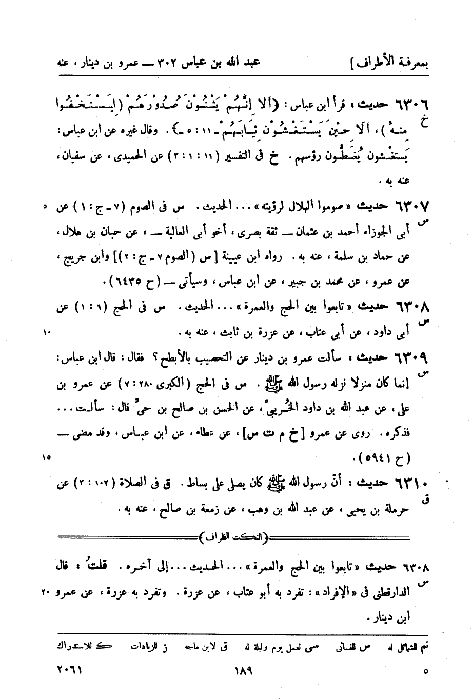س في الصوم (7 - ج: 1) عن أبي الجوزاء أحمد بن عثمان - ثقة بصري، أخو أبي العالية - عن حبان بن هلال، عن حماد بن سلمة، عنه به. رواه ابن عيينة [س (الصوم 7 - ج: 2) ] وابن جريج، عن عمرو، عن محمد بن جبير، عن ابن عباس، وسيأتي - (ح 6435)