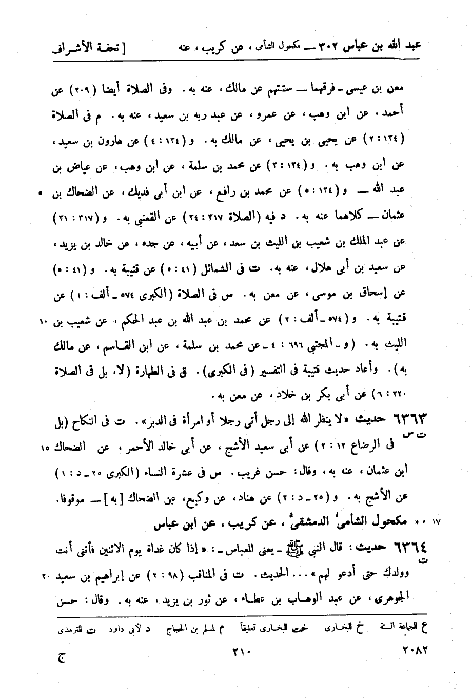 6363 -[ت س] حديث لا ينظر الله إلى رجل أتى رجلاً أو امرأة في الدبر (ت) في النكاح (بل في الرضاع 12: 2) عن أبي سعيد الأشج، عن أبي خالد الأحمر، عن الضحاك بن عثمان، عنه به. وقال: حسن غريب.