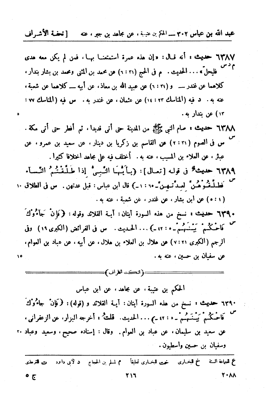 6390 -[س] حديث: نسخ من هذه السورة آيتان: آية القلائد وقوله: فَإنْ جاءوك فَاحْكُمْ بَيْنَهُمْ (5: 42) ... الحديث