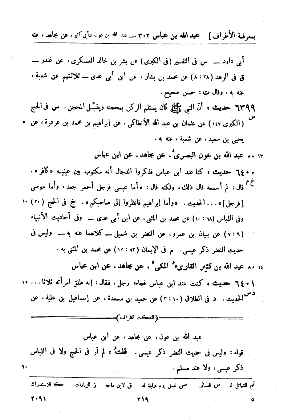 6399 -[س] حديث: أنّ النبي صَلَّى اللَّهُ عَلَيْهِ وَسَلَّمَ كان يستلم الركن بمحجنه ويقبِّل المحجن. (س) في الحج (الكبرى 147) عن عثمان بن عبد الله الأنطاكي، عن إبراهيم بن محمد بن عرعرة، عن يحيى بن سعيد، عن شعبة، عنه به.