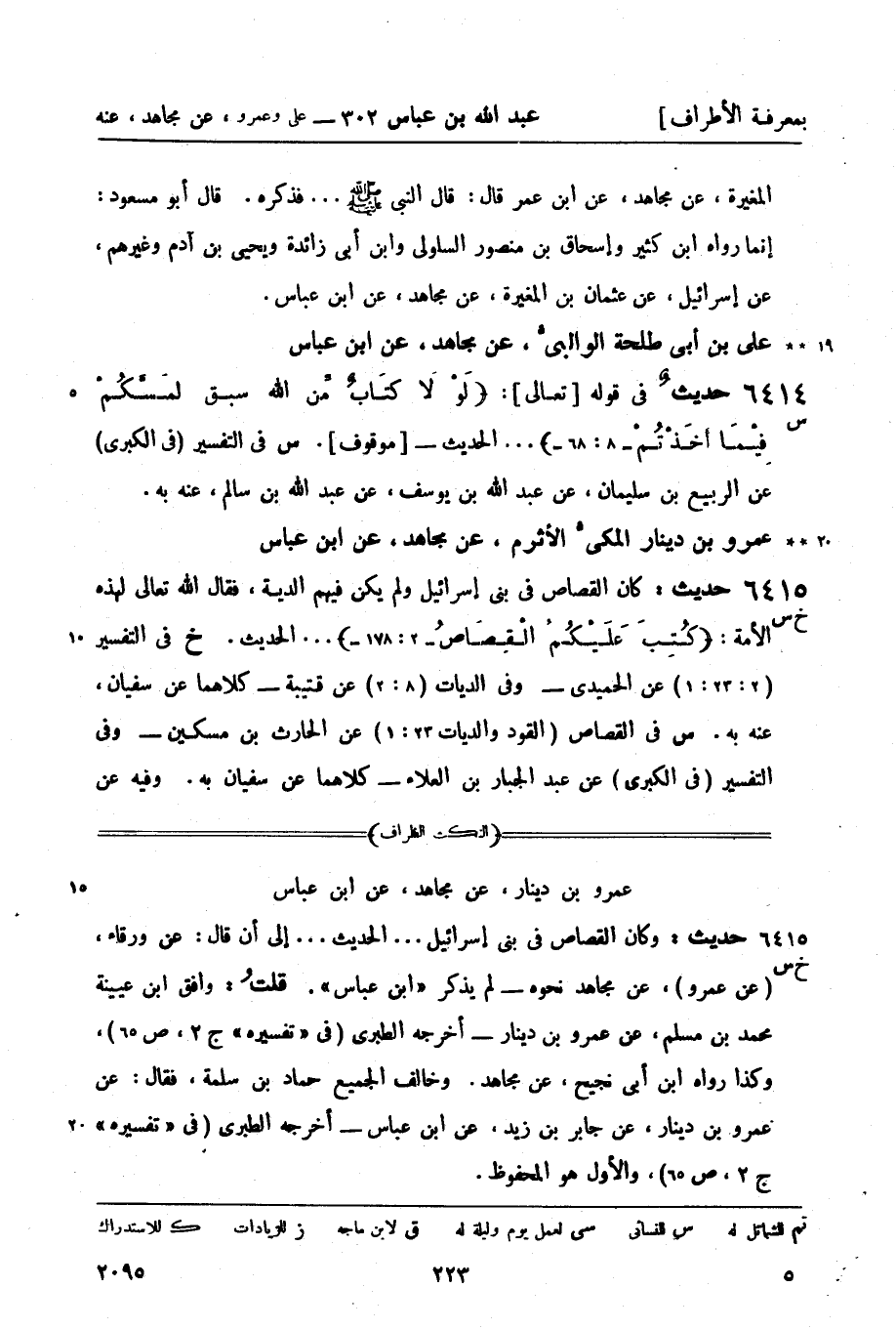 س في القصاص (القود والديات 23: 1) عن الحارث بن مسكين - وفي التفسير (في الكبرى) عن عبد الجبار بن العلاء - كلاهما عن سفيان به. وفيه عن -[224]- محمد بن إسماعيل بن إبراهيم، عن علي بن حفص المدائني، عن ورقاء، عن عمرو، عن مجاهد نحوه - ولم يذكر ابن عباس