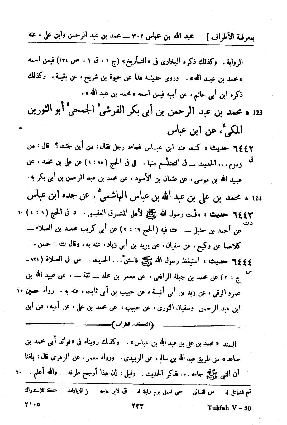 س في الصلاة (721 - ج: 3) عن محمد بن جبلة الرافعي، عن معمر بن مخلد - ثقة -، عن عبيد الله بن عمرو الرقي، عن زيد بن أبي أنيسة، عن حبيب بن أبي ثابت، عنه به. رواه حصين بن عبد الرحمن وسفيان الثوري، عن حبيب، عن محمد بن علي، عن أبيه، عن ابن -[234]- عباس، وقد مضى - (ح 6287)