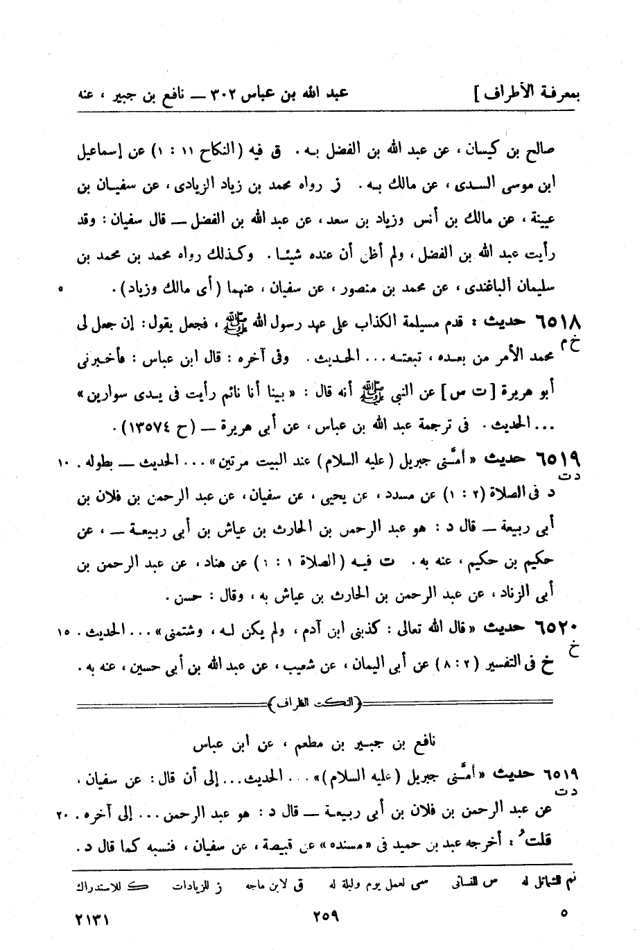 6518 -[خ م] حديث: قدم مسيلمة الكذاب على عهد رسول الله صَلَّى اللَّهُ عَلَيْهِ وَسَلَّمَ فجعل يقول: إن جعل لي محمد الأمر من بعده، تبعته ... الحديث. وفي آخره: قال ابن عباس: فأخبرني أبو هريرة [ت س] عن النبي صَلَّى اللَّهُ عَلَيْهِ وَسَلَّمَ أنه قال: بينا أنا نائم رأيت في يدي سوارين ... الحديث. في ترجمة عبد الله بن عباس، عن أبي هريرة - (ح 13574)