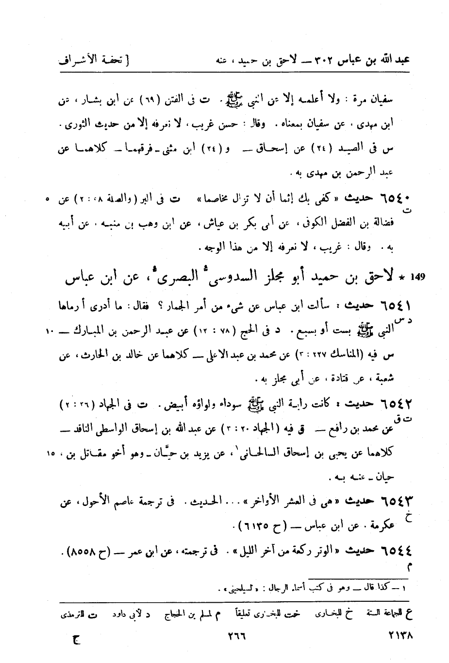 6542 -[ت ق] حديث: كانت راية النبي صَلَّى اللَّهُ عَلَيْهِ وَسَلَّمَ سوداء ولواؤه أبيض. (ت) في الجهاد (36: 2) عن محمد بن رافع -