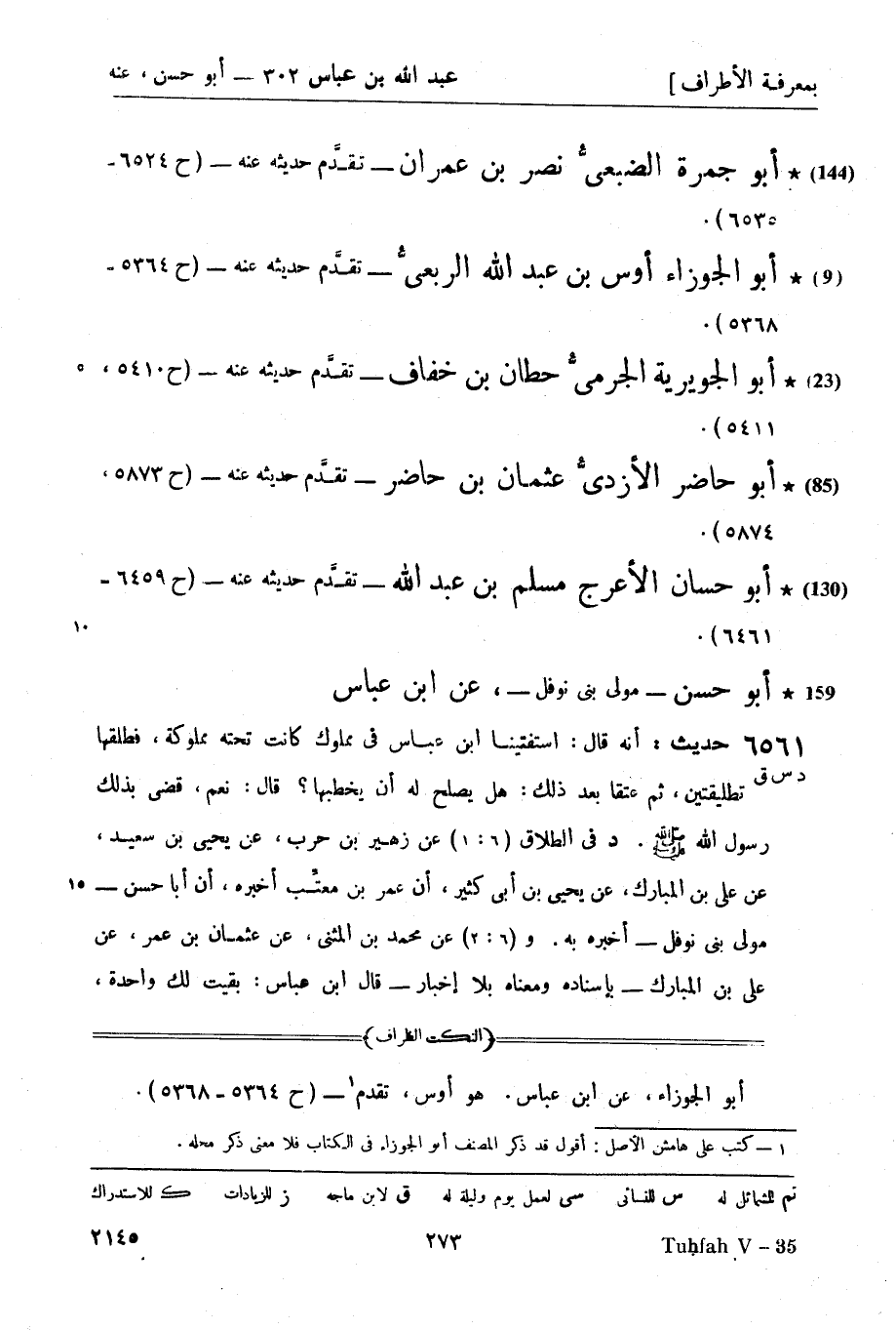 (144) أبو جمرة الضبعيُّ نصر بن عمران - تقدَّم حديثه عنه - (ح 6524 - 6535)