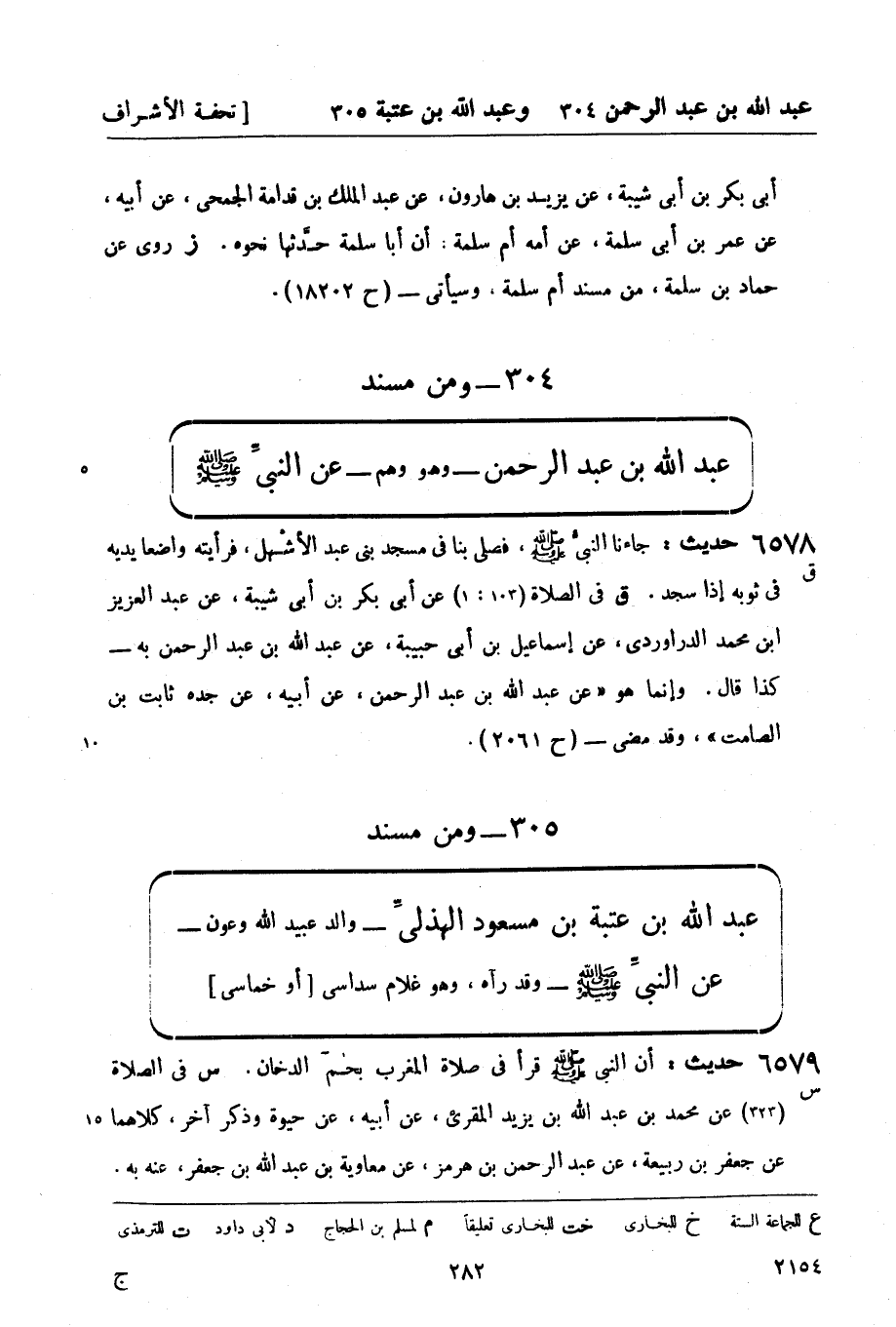 ومن مسند عبد الله بن عتبة بن مسعود الهذليِّ - والد عبيد الله وعون - عن النبيِّ صَلَّى اللَّهُ عَلَيْهِ وَسَلَّمَ - وقد رآه، وهو غلام سداسي [أو خماسي]