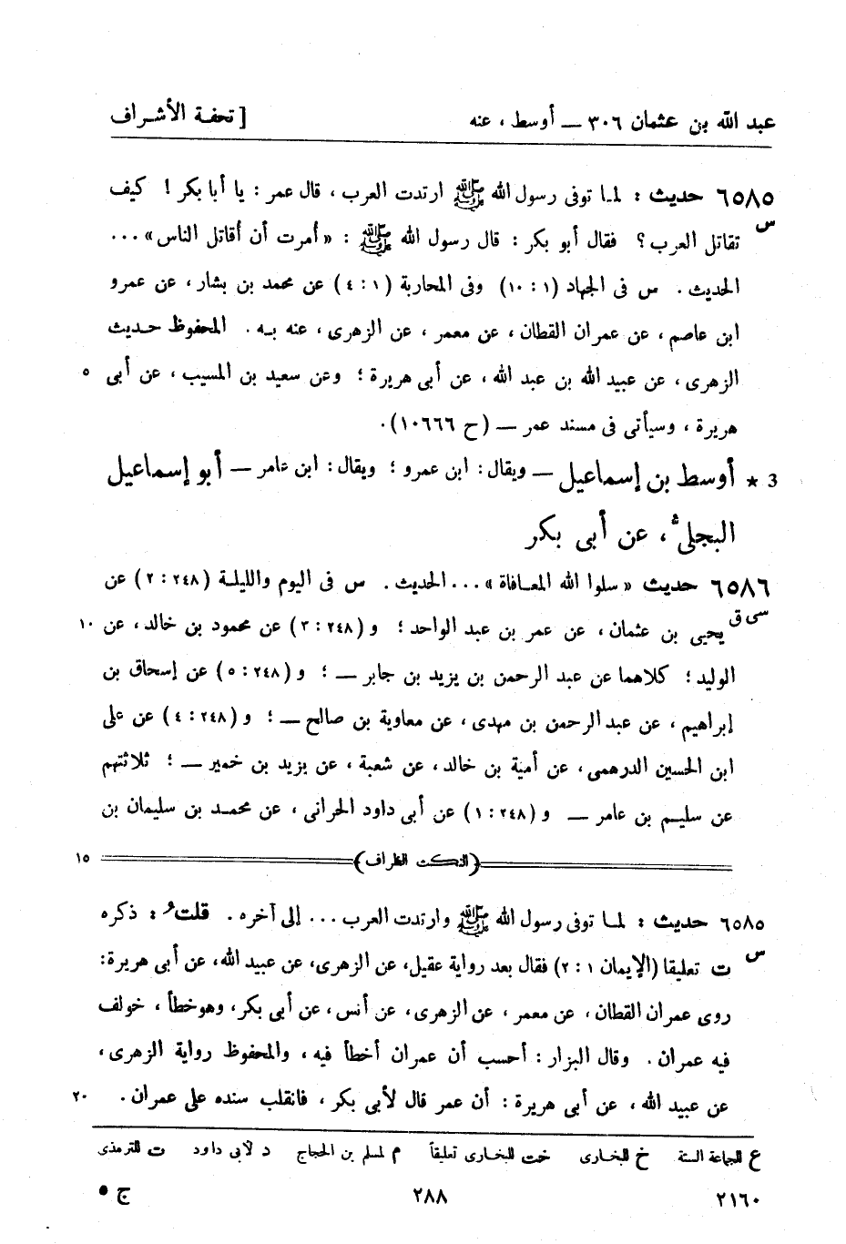 6586 -[س] حديث: لما توفي رسول الله صَلَّى اللَّهُ عَلَيْهِ وَسَلَّمَ ارتدت العرب، قال عمر: يا أبا بكر! كيف تقاتل العرب؟ فقال أبو بكر: قال رسول الله صَلَّى اللَّهُ عَلَيْهِ وَسَلَّمَ أُمرت أن أُقاتل الناس ... الحديث.