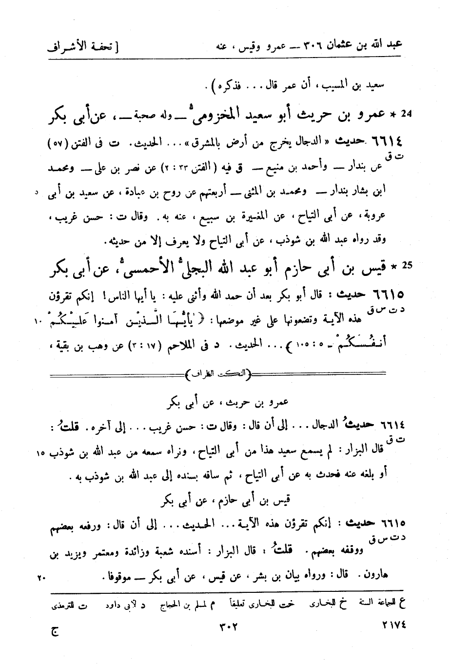 ق في الفتن (20: 2) عن أبي بكر بن أبي شيبة، عن عبد الله بن نمير - وأبي أسامة - ثلاثتهم عن إسماعيل نحوه. (ز) رواه عمران بن عيينة، عن بيان بن بشر، عن قيس نحوه. ورواه شعبة، عن الحكم، عن قيس بن أبي حازم، عن أبي بكر: أن الناس إذا رأوا المنكر - مثل حديث إسماعيل