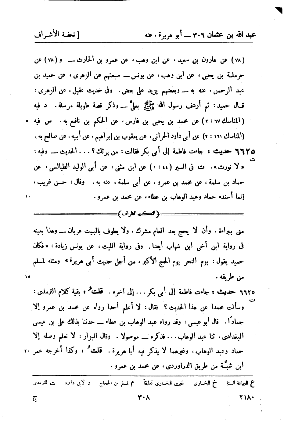 ت في السير (44: 1) عن ابن مثنى، عن أبي الوليد الطيالسي، عن حماد بن سلمة، عن محمد بن عمرو، عن أبي سلمة، عنه به. وقال: حسن غريب، إنما أسنده حماد وعبد الوهاب بن عطاء، عن محمد بن عمرو.
