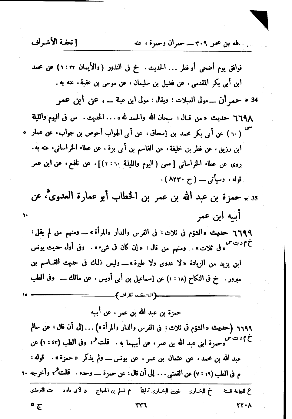 س في اليوم والليلة (60) عن أبي بكر محمد بن إسحاق، عن أبي الجواب أحوص بن جواب، عن عمار بن رزيق، عن فطر بن خليفة، عن القاسم بن أبي بزة، عن عطاء الخراساني، عنه به. روي عن عطاء الخراساني [سى (اليوم والليلة 60: 2) ] عن نافع، عن ابن عمر قوله، وسيأتي - (ح 8230) 35 حمزة بن عبد الله بن عمر بن الخطاب أبو عمارة العدويُّ، عن أبيه ابن عمر