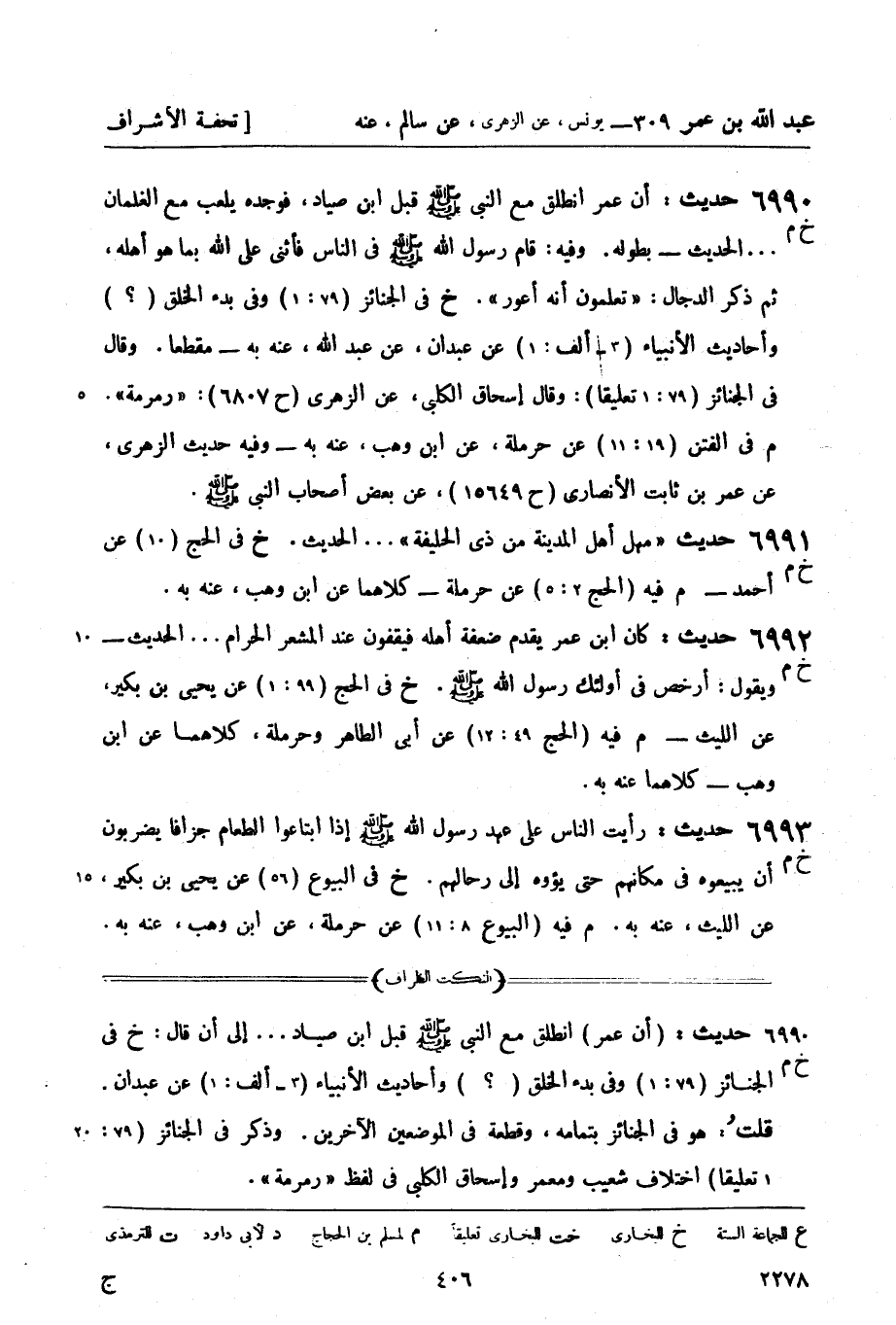 6993 -[خ م] حديث: رأيت الناس على عهد رسول الله صَلَّى اللَّهُ عَلَيْهِ وَسَلَّمَ إذا ابتاعوا الطعام جزافاً يضربون أن يبيعوه في مكانهم حتى يؤوه إلى رحالهم خ في البيوع (56) عن يحيى بن بكير عن الليث عنه به. م فيه (البيوع 8: 11) عن حرملة عن ابن وهب عنه به. -[407]- وقال في آخره قال الزهري: وحدثني عبيد الله بن عبد الله بن عمر أن أباه كان يشتري الطعام جزافاً فيحمله إلى أهله
