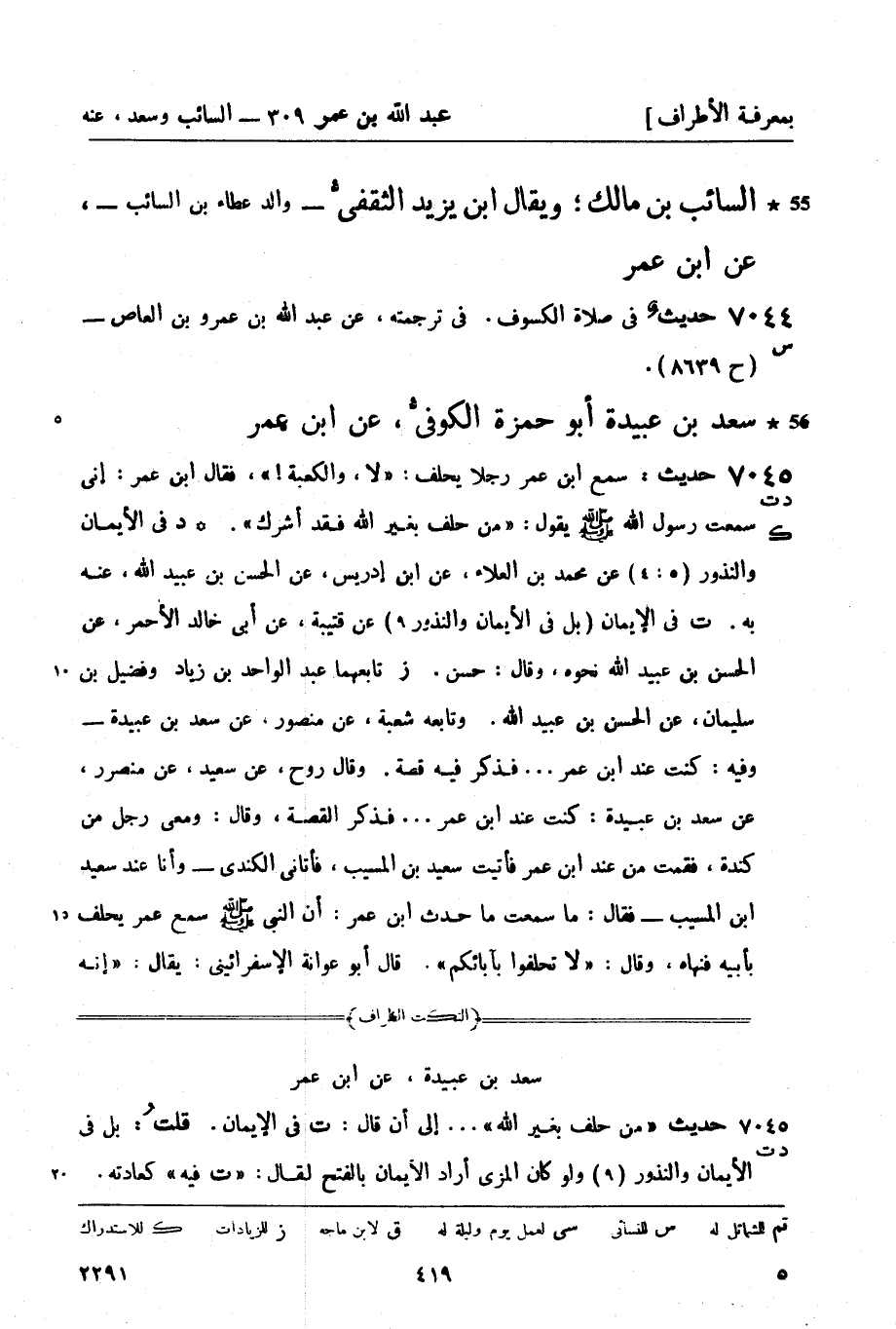 7045 -[د ت] حديث: سمع ابن عمر رجلاً يحلف: لا، والكعبة فقال ابن عمر: إني سمعت رسول الله صَلَّى اللَّهُ عَلَيْهِ وَسَلَّمَ يقول: من حلف بغير الله فقد أشرك. ك