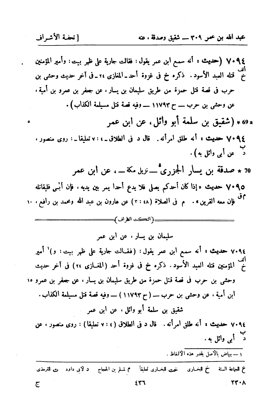 7094 - (ب د) حديث: أنه طلق امرأته قال د في الطلاق - 4: 7 تعليقاً -: روى منصور عن أبي وائل به)