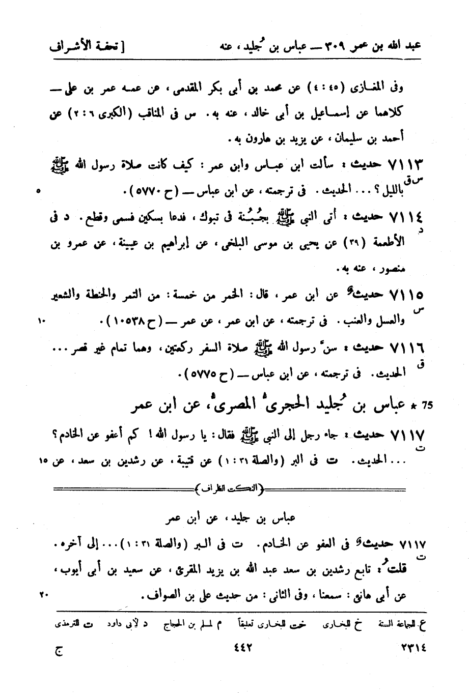7116 -[ق] حديث: سنَّ رسول الله صَلَّى اللَّهُ عَلَيْهِ وَسَلَّمَ صلاة السفر ركعتين وهما تمام غير قصر ... الحديث في ترجمته عن ابن عباس - (ح 5775)