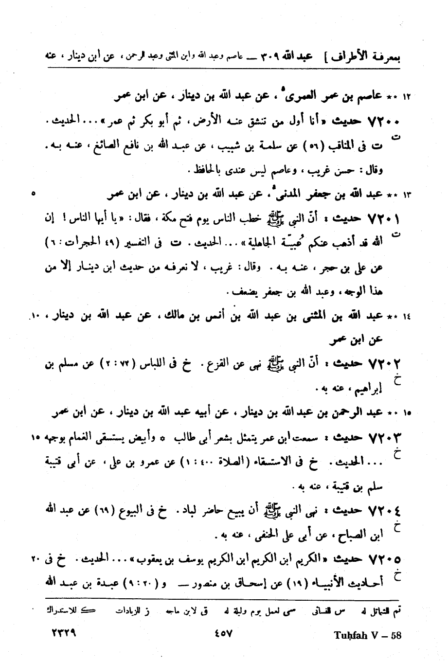 7200 -[ت] حديث أنا أول من تنشق عنه الأرض ثم أبو بكر ثم عمر ... الحديث ت في المناقب (56) عن سلمة بن شبيب عن عبد الله بن نافع الصائغ عنه به. وقال: حسن غريب وعاصم ليس عندي بالحافظ