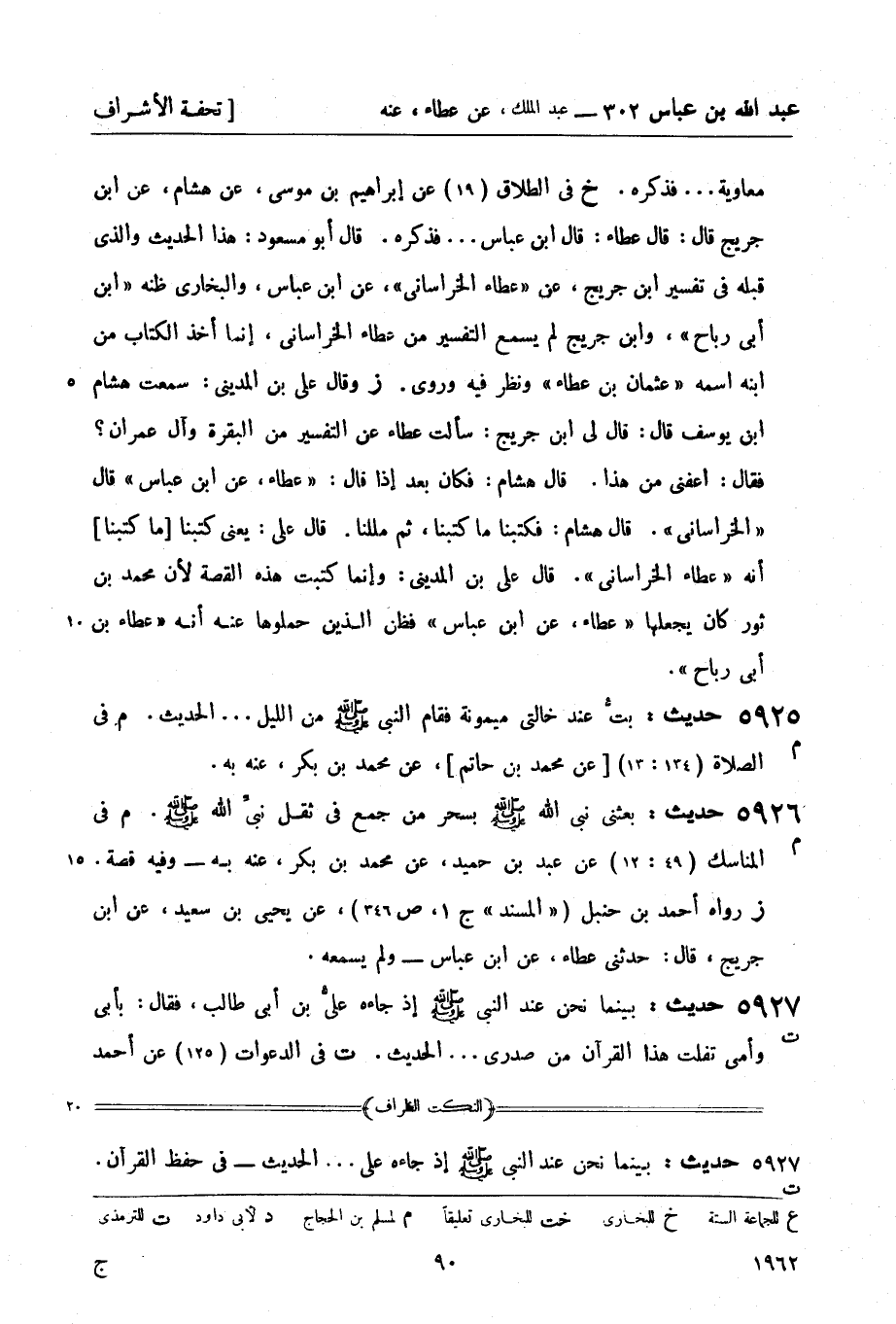 5925 - (م) حديث: بتُّ عند خالتي ميمونة فقام النبي من الليل ... الحديث. م في الصلاة (134: 13) (عن محمد بن حاتم) ، عن محمد بن بكر، عنه به.
