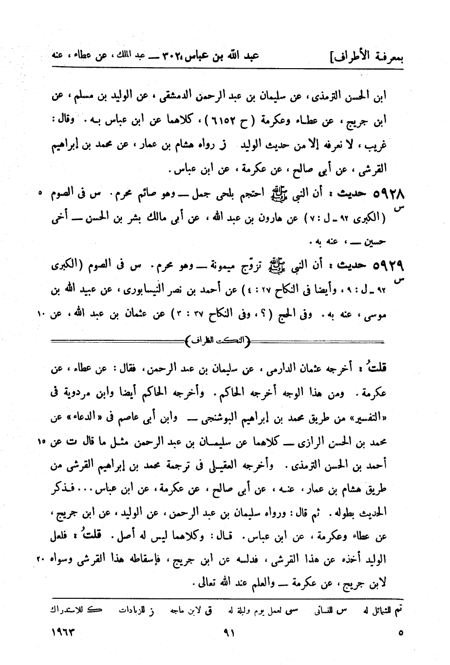 5929 - (س) حديث: أن النبي تزوّج ميمونة وهو محرم. س في الصوم (الكبرى 92 ل: 9، وأيضاً في النكاح 27: 4) عن أحمد بن نصر النيسابوري، عن عبيد الله بن موسى، عنه به. وفي الحج (وفي النكاح 37: 3) عن عثمان بن عبد الله، -[92]- عن إبراهيم بن الحجاج، عن وهيب، عنه به. وزاد: جعلت أمرها إلى العباس فأنكحها إيَّاه. وقال: حديث منكر، ووهيب ثقة، ولا أدري من أين أتى. وفي الصوم أيضاً (الكبرى 92 ل: 10) عن حميد بن مسعدة، عن سفيان بن حبيب، عن ابن جريج، عن عطاء به مرسلاً.
