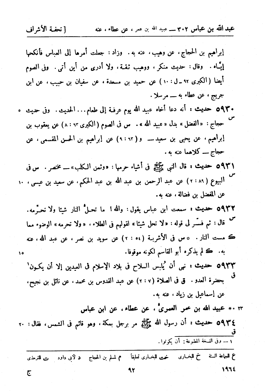 5933 - (ق) حديث: نهى أن يُلبس السلاح في بلاد الإسلام في العيدين إلا أن يكون بحضرة العدو. ق في الصلاة (7: 2) عن عبد القدوس بن محمد، عن نائل بن نجيح، عن إسماعيل بن زياد، عنه به.