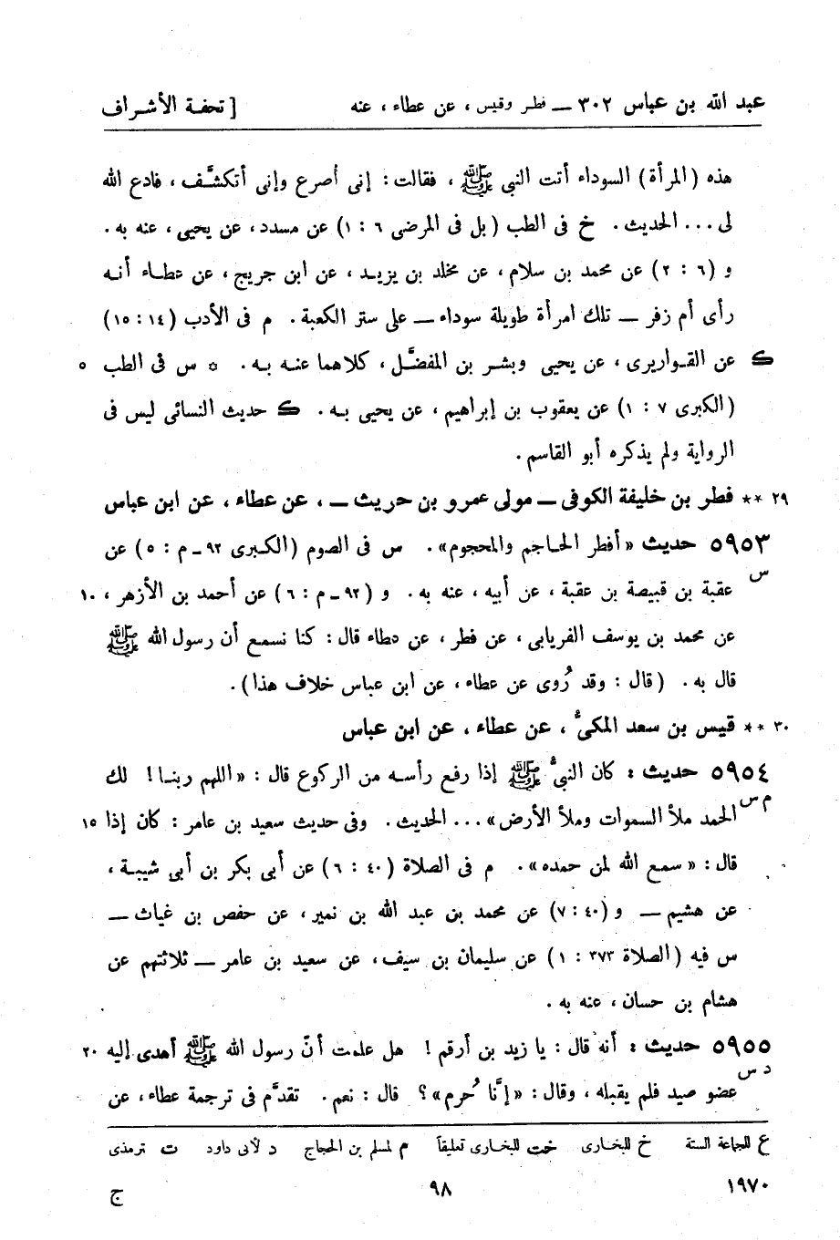 5953 - (س) حديث: أفطر الحاجم والمحجوم. س في الصوم (الكبرى 92 م: 5) عن عقبة بن قبيصة بن عقبة، عن أبيه، عنه به. و (92 م: 6) عن أحمد بن الأزهر، عن محمد بن يوسف الفريابي، عن فطر، عن عطاء قال: كنا نسمع أن رسول الله قال به. (قال: وقد رُوي عن عطاء، عن ابن عباس خلاف هذا) .