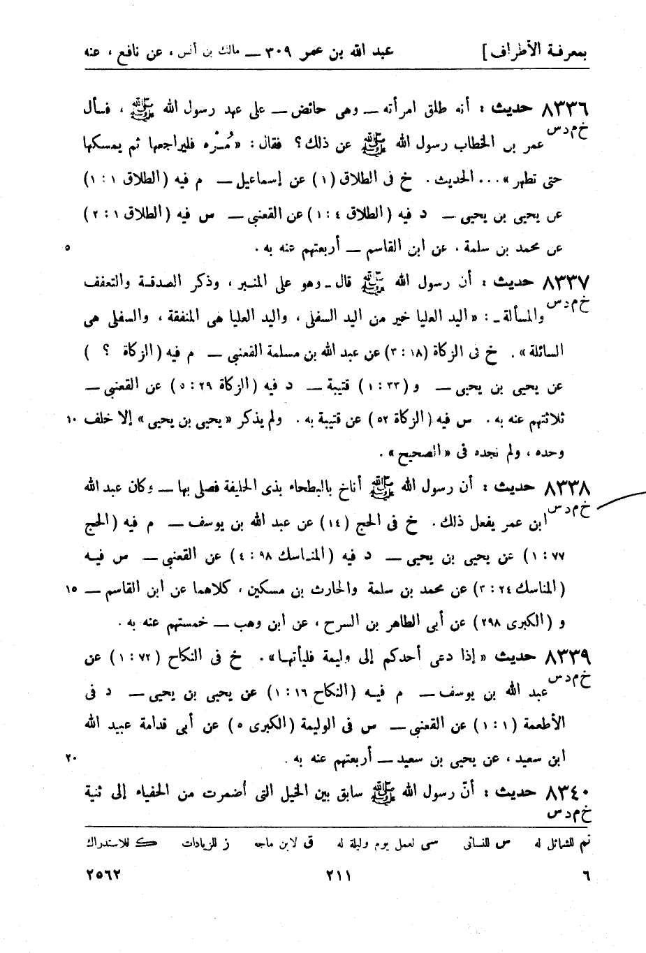 8339 -[خ م د س] حديث إذا دعي أحدكم إلى وليمة فليأتها. (خ) في النكاح (72: 1) عن عبد الله بن يوسف -