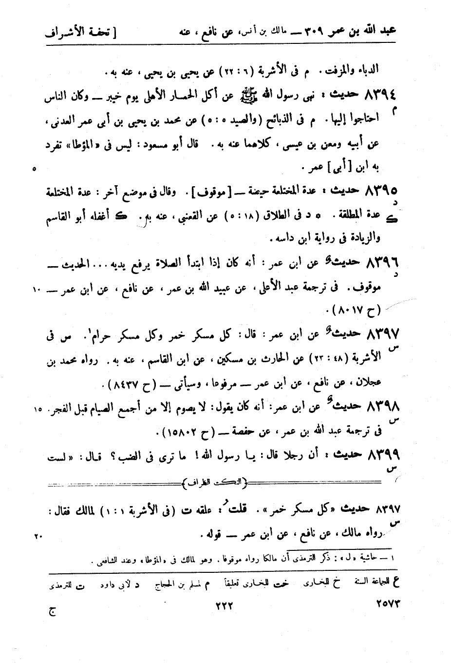 8397 -[س] حديث عن ابن عمر: قال كل مسكر خمر وكل مسكر حرام1. (س) في الأشربة (48: 23) عن الحارث بن مسكين، عن ابن القاسم، عنه بِهِ. رواه محمد بن عجلان، عن نافع، عن ابن عمر - مرفوعًا، وسيأتي - (8437) .