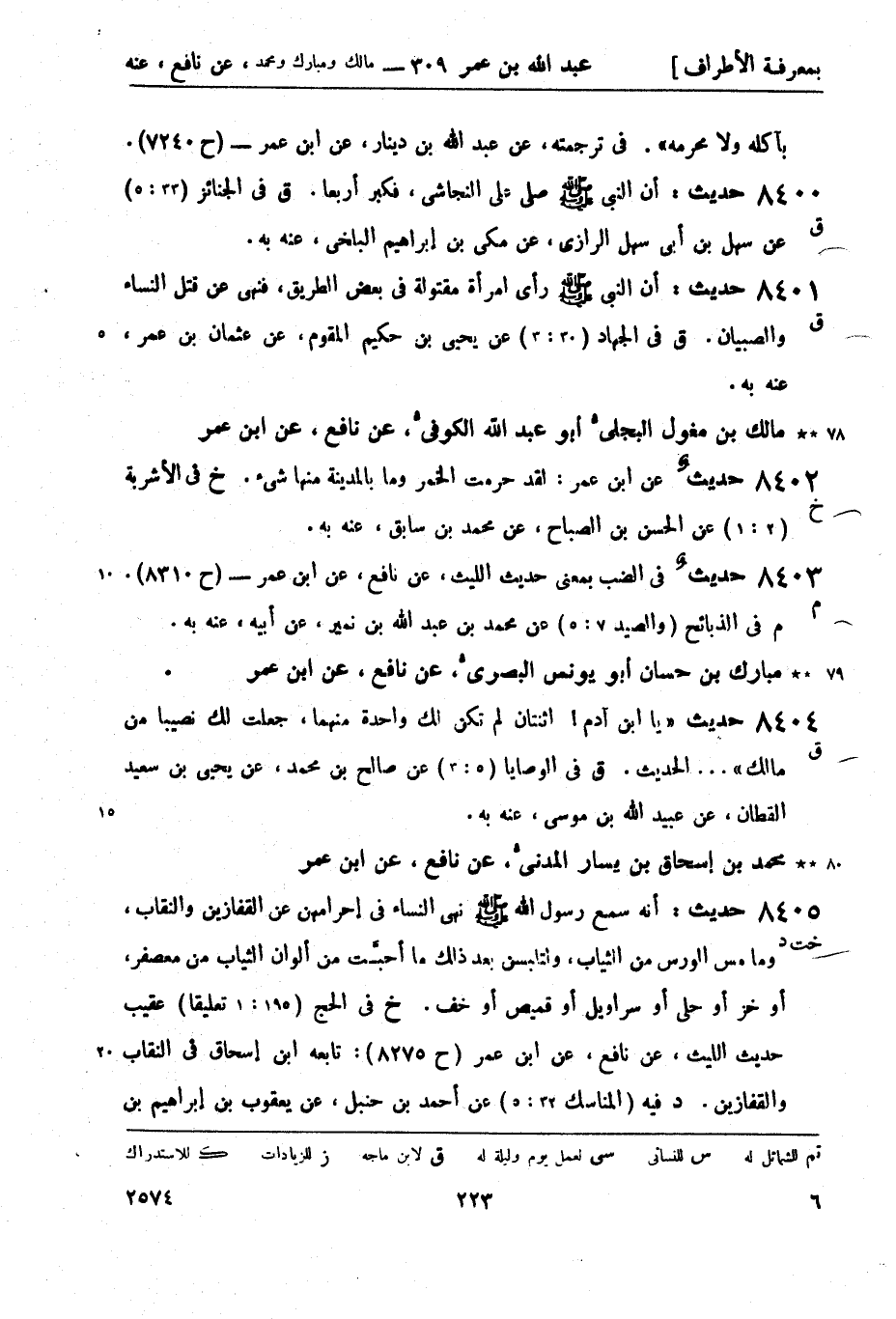 مالك بن مغول البجليُّ أبو عبد الله الكوفيُّ، عن نافع، عن ابن عمر