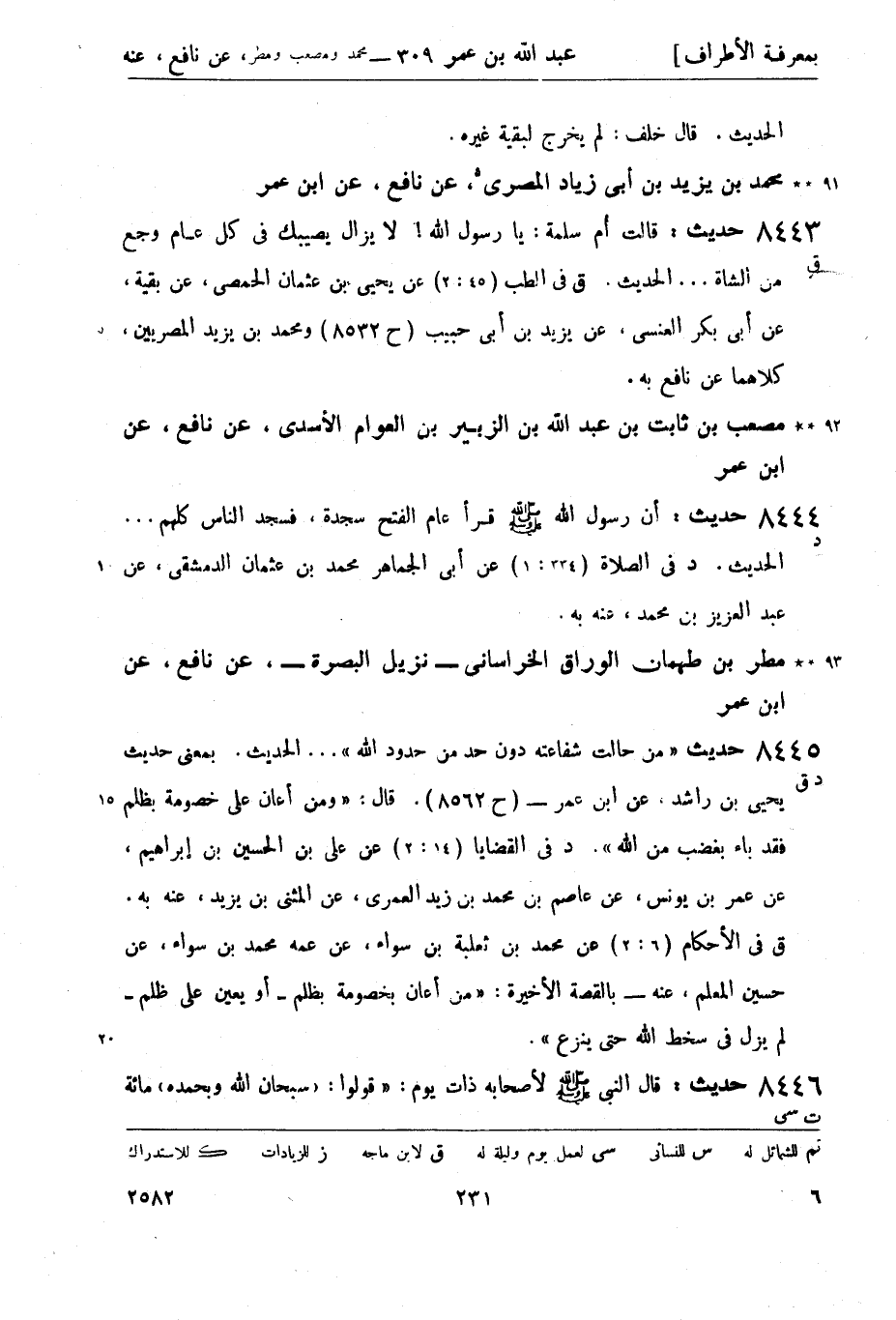 س في اليوم والليلة (60: 3) عن عمرو بن علي، عن عيسى بن شعيب، عن روح بن القاسم - و (؟) عن أحمد بن أبي سريج، عن عمر بن يونس، عن عاصم بن محمد، عن المثنى بن يزيد - كلاهما عنه نحوه.