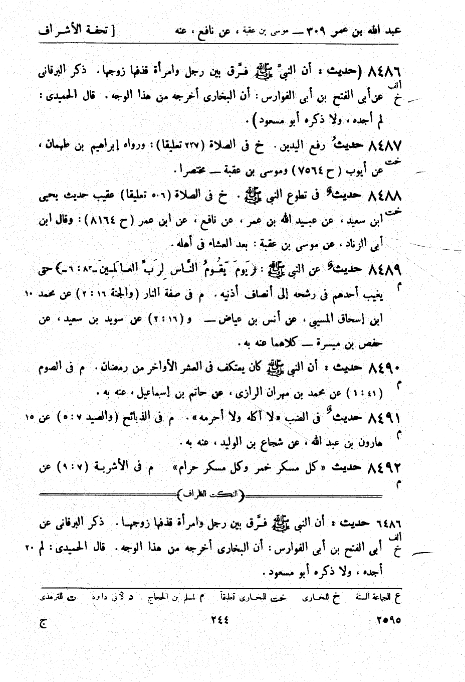 8487 -[خت] حديث رفع اليدين. (خ) في الصلاة (237 تعليقًا) : ورواه إبراهيم بن طهمان، عن أيوب (ح 7564) وموسى بن عقبة - مختصرًا.