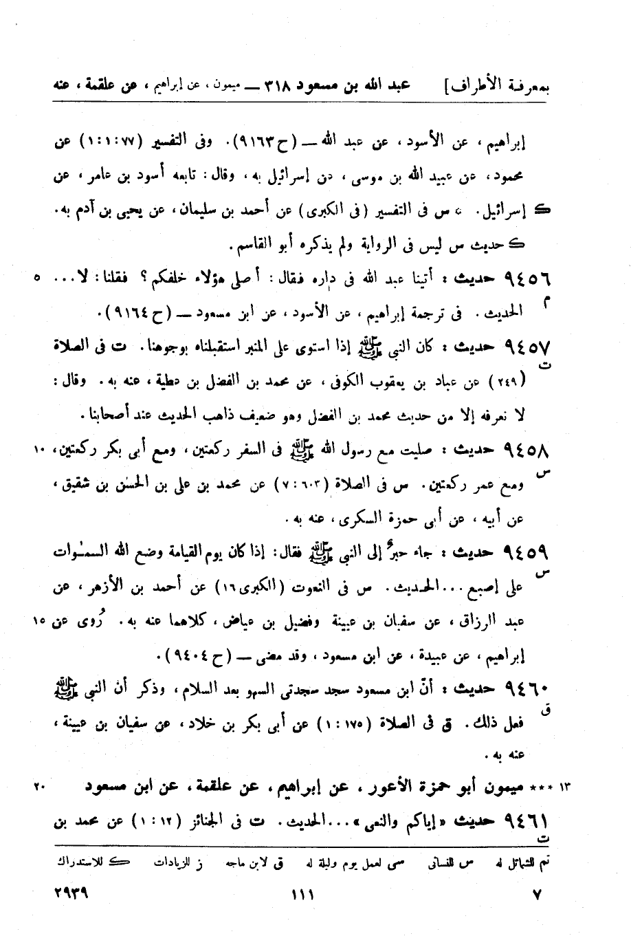 س في النعوت (الكبرى 16) عن أحمد بن الأزهر , عن عبد الرزاق , عن سفيان بن عيينة وفضيل بن عياض , كلاهما عنه به. رُوي عن إبراهيم , عن عبيدة , عن ابن مسعود، وقد مضى - (ح 9404) .