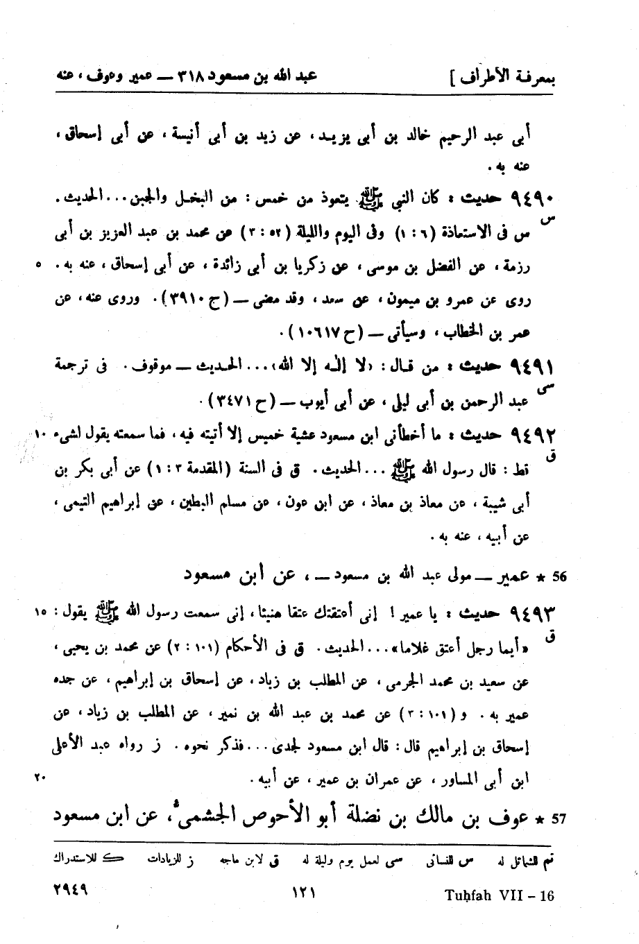 ق في الأحكام (101: 2) عن محمد بن يحيى , عن سعيد بن محمد الجرمي , عن المطلب بن زياد , عن إسحاق بن إبراهيم , عن جده عمير به. و (101: 3) عن محمد بن عبد الله بن نمير , عن المطلب بن زياد , عن إسحاق بن إبراهيم قال: قال ابن مسعود لجدي ... فذكر نحوه. (ز) رواه عبد الأعلى بن أبي المساور , عن عمران بن عمير , عن أبيه.
