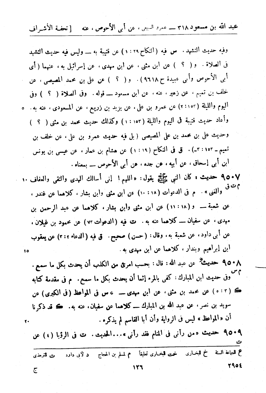 9508 -[م س] حديثٌ عن عبد الله: قال: بحسب امرئ من الكذب أن يحدث بكل ما سمع. وفي حديث ابن المبارك: كفى بالمرء إثماً أن يحدث بكل ما سمع. (م) في مقدمة كتابه (3: 5) عن محمد بن مثنى , عن ابن مهدي - (ك)