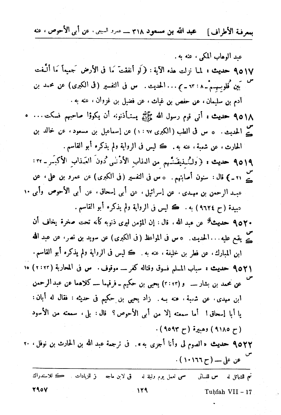 س في التفسير (في الكبرى) عن عمرو بن علي , عن عبد الرحمن بن مهدي , عن إسرائيل , عن أبي إسحاق , عن أبي الأحوص وأبي عبيدة (ح 9624) به. (ك) ليس في الرواية ولم يذكره أبو القاسم.