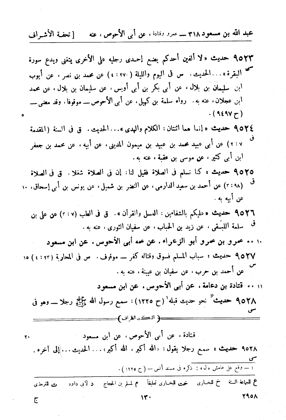 س في اليوم والليلة (270: 4) عن محمد بن نصر , عن أيوب بن سليمان بن بلال , عن أبي بكر بن أبي أويس، عن سليمان بن بلال , عن محمد بن عجلان , عنه به. رواه سلمة بن كهيل , عن أبي الأحوص - موقوفاً، وقد مضى - (ح 9497) .