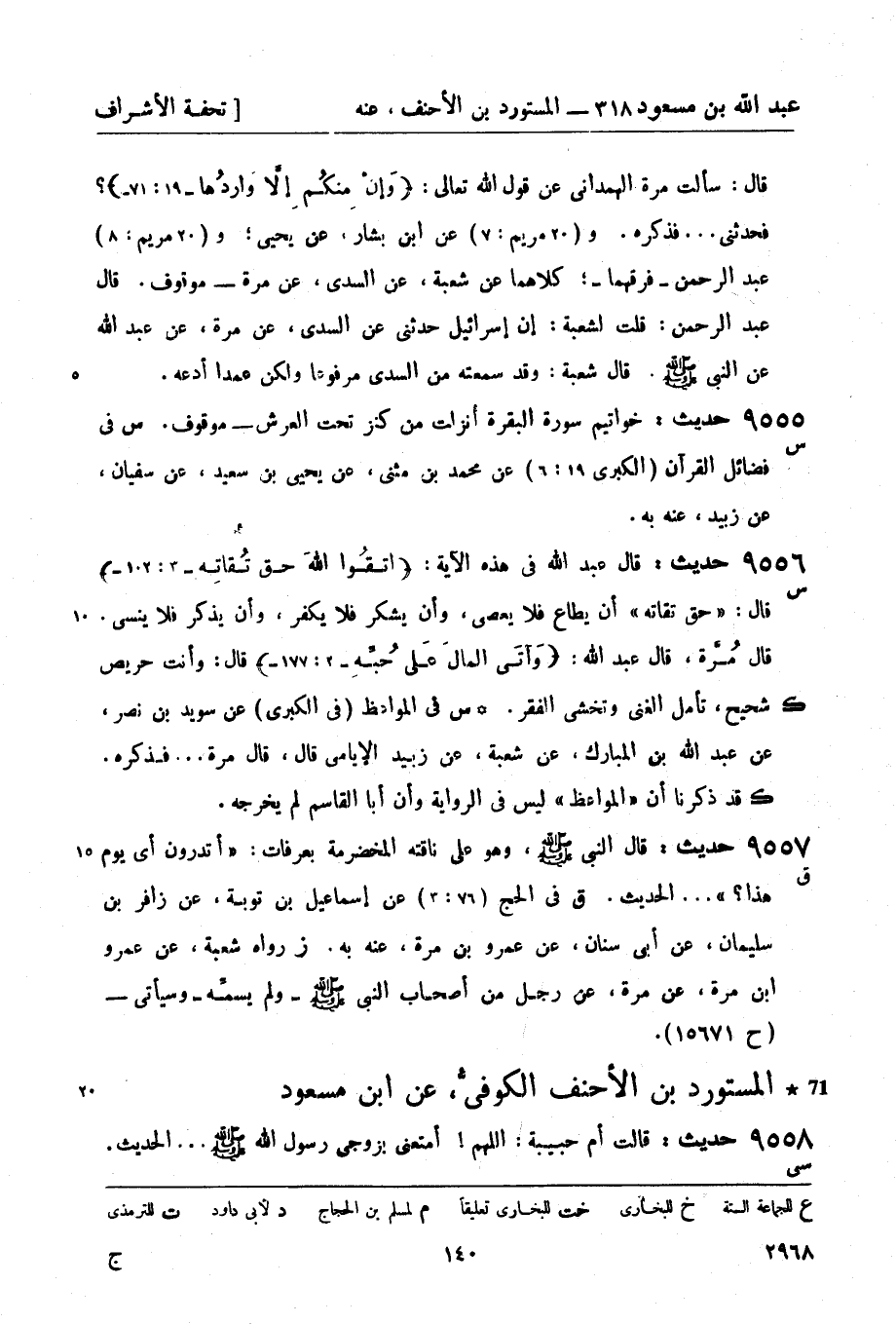 -[141]- س في اليوم والليلة (97: 3) عن محمد بن عبد الله بن عبد الرحيم، عن خالد بن عبد الرحمن , عن المسعودي , عن علقمة بن مرثد، عنه به. روي عن علقمة بن مرثد، عن المغيرة بن عبد الله اليشكري، عن المعرور بن سويد , عن ابن مسعود، وسيأتي - (ح 9589) .