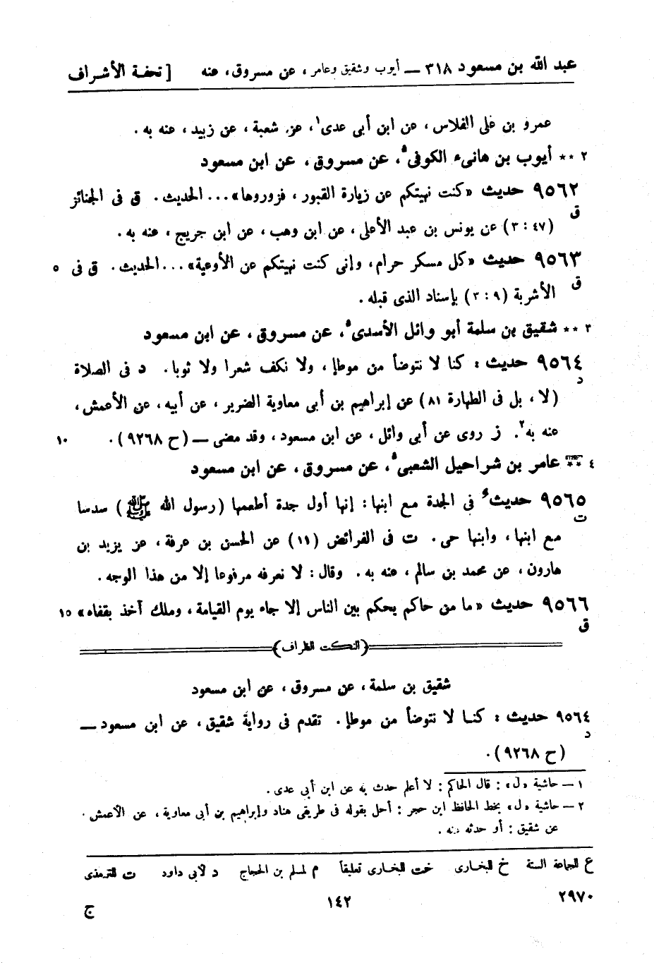 9564 -[د] حديث: كنا لا نتوضأ من موطأ، ولا نكف شعراً ولا ثوباً. (د) في الصلاة (لا، بل في الطهارة 81) عن إبراهيم بن أبي معاوية الضرير، عن أبيه , عن الأعمش , عنه به2. (ز) روي عن أبي وائل , عن ابن مسعود، وقد مضى - (ح 9268) .