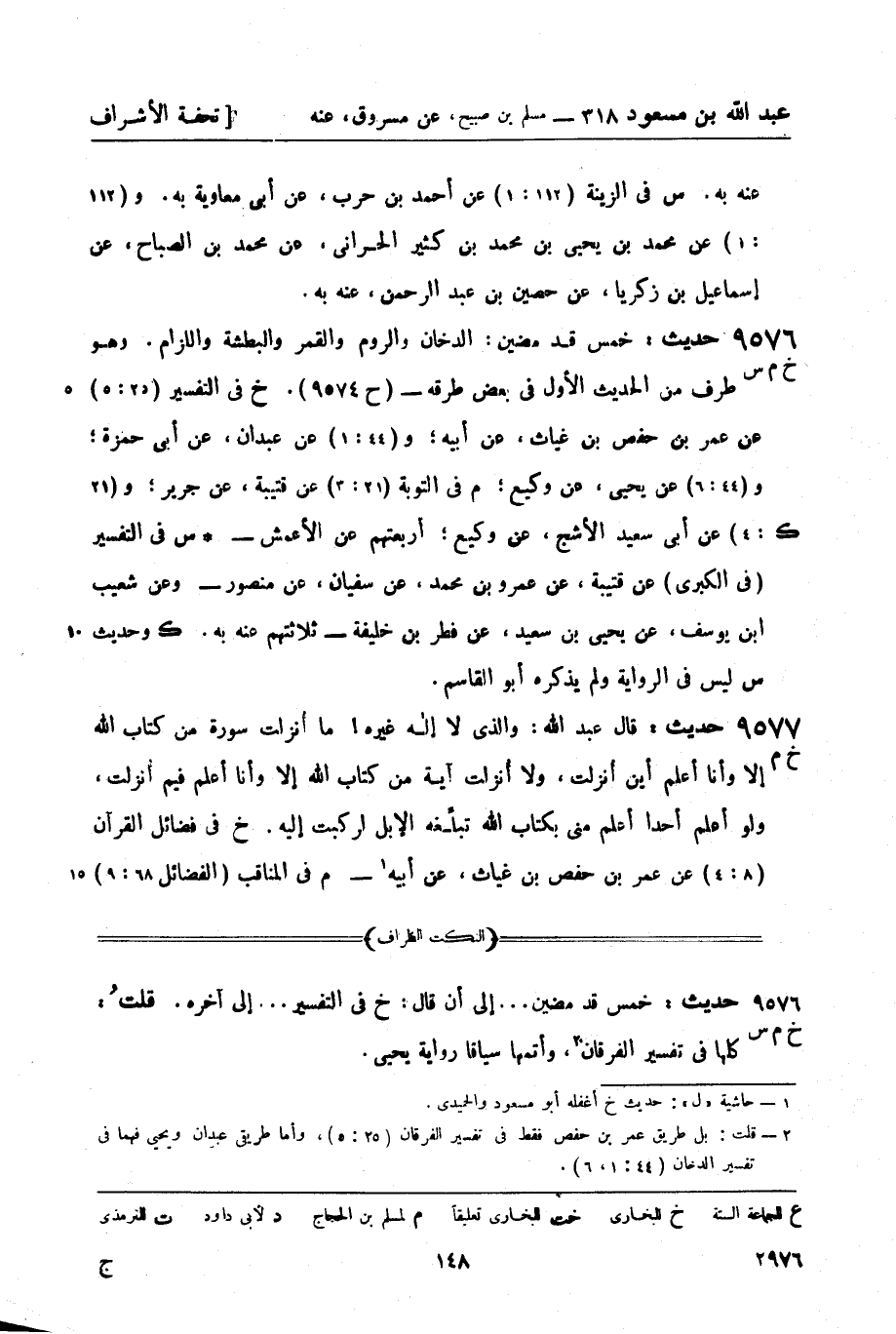 9576 -[خ م س] حديث: خمس قد مضين: الدخان والروم والقمر والبطشة واللزام. وهو طرف من الحديث الأول في بعض طرقه - (ح 9574) .