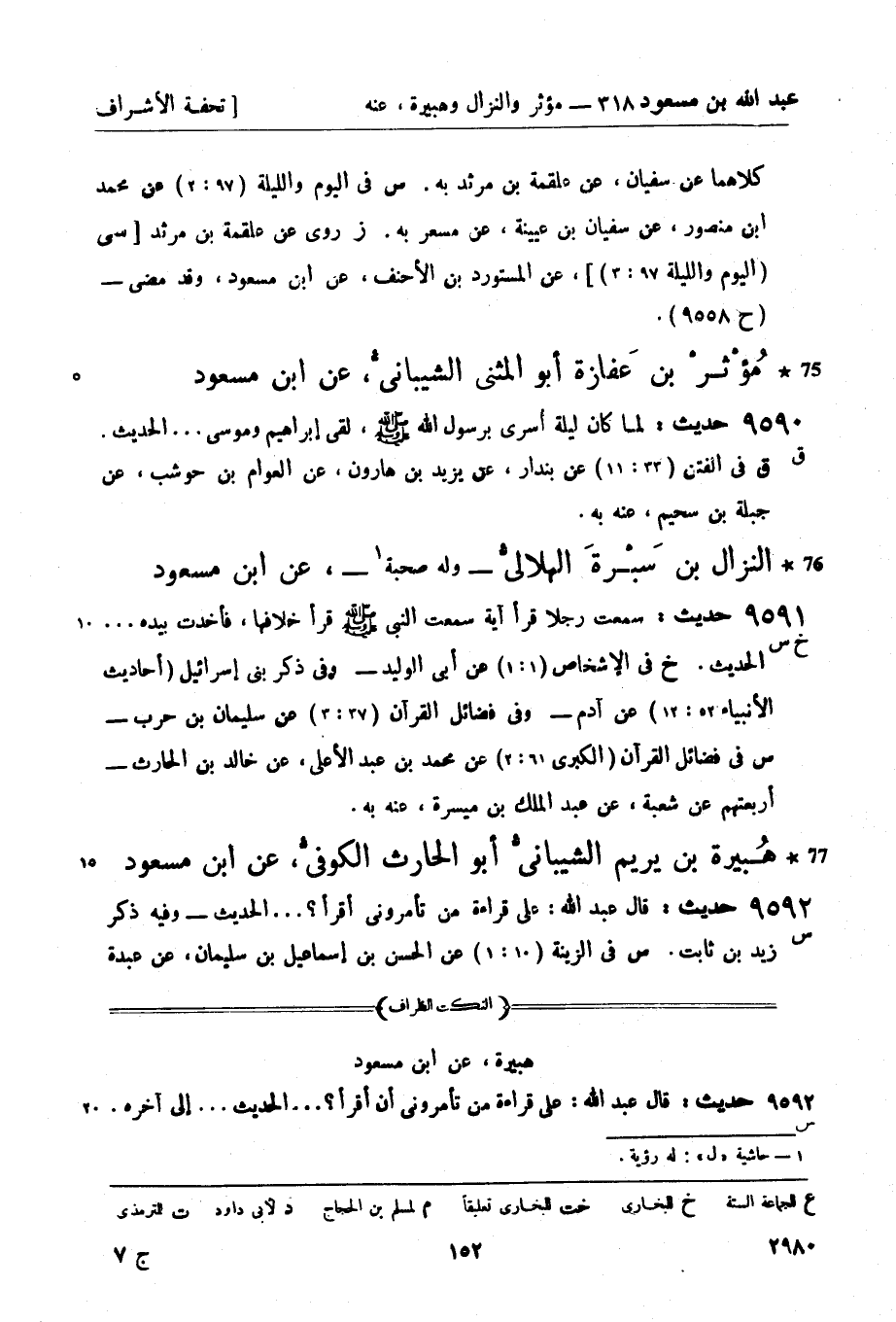 9592 -[س] حديث: قال عبد الله: على قراءة من تأمروني أقرأ؟ ... الحديث - وفيه ذكر زيد بن ثابت.