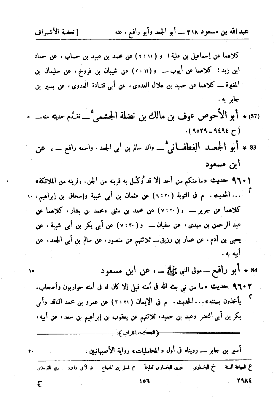 (57) أبو الأحوص عوف بن مالك بن نضلة الجشميُّ - تقدَّم حديثه عنه - (ح 9494 - 9529) .