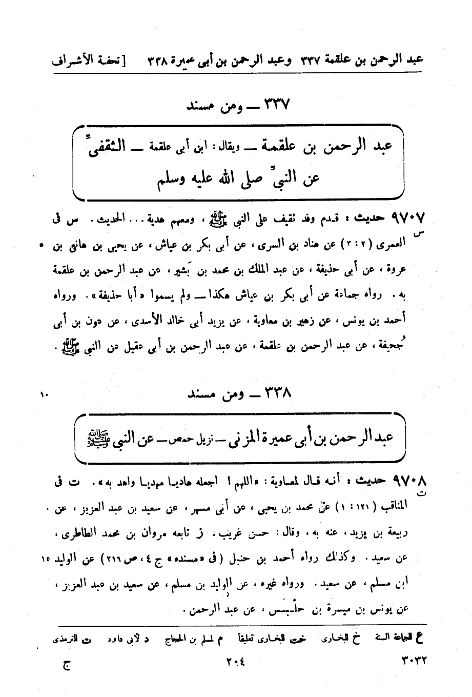 س في العمرى (2: 3) عن هناد بن السري، عن أبي بكر بن عياش، عن يحيى بن هانئ بن عروة، عن أبي حذيفة، عن عبد الملك بن محمد بن بَشير، عن عبد الرحمن بن علقمة به. رواه جماعة عن أبي بكر بن عياش هكذا - ولم يسموا أبا حذيفة. ورواه أحمد بن يونس، عن زهير بن معاوية، عن يزيد أبي خالد الأسدي، عن عون بن أبي جُحيفة، عن عبد الرحمن بن علقمة، عن عبد الرحمن بن أبي عقيل عن النبيّ صَلَّى اللَّهُ عَلَيْهِ وَسَلَّمَ.