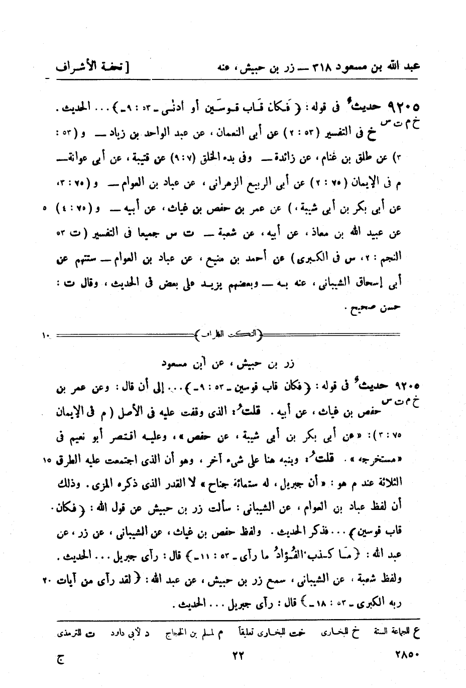 م في الإيمان (75: 2) عن أبي الربيع الزهراني، عن عباد بن العوام - و (75: 3 , عن أبي بكر بن أبي شيبة ,) عن عمر بن حفص بن غياث , عن أبيه - و (75: 4) عن عبيد الله بن معاذ، عن أبيه , عن شعبة - (ت س) جميعاً في التفسير (ت 53 النجم: 2 , س في الكبرى) عن أحمد بن منيع , عن عباد العوام - ستتهم عن أبي إسحاق الشيباني، عنه به - وبعضهم يزيد على بعض في الحديث، وقال