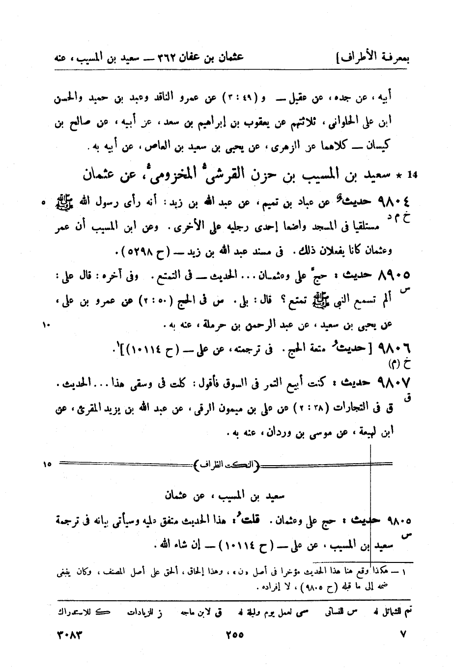 سعيد بن المسيب بن حزن القرشيُّ المخزوميُّ، عن عثمان