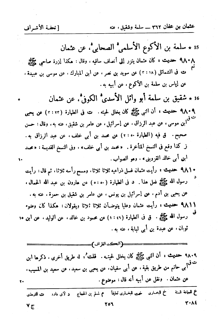 9810 -[د] حديث: رأيت عثمان غسل ذراعيه ثلاثاً ثلاثاً , ومسح رأسه ثلاثاً , ثم قال: رأيت رسول الله صَلَّى اللَّهُ عَلَيْهِ وَسَلَّمَ فعل هذا. (د) في الطهارة (50: 5) عن هارون بن عبد الله الحمال، عن يحيى بن آدم، عن إسرائيل بن يونس، عن عامر بن شقيق بن حمزة , عنه به.