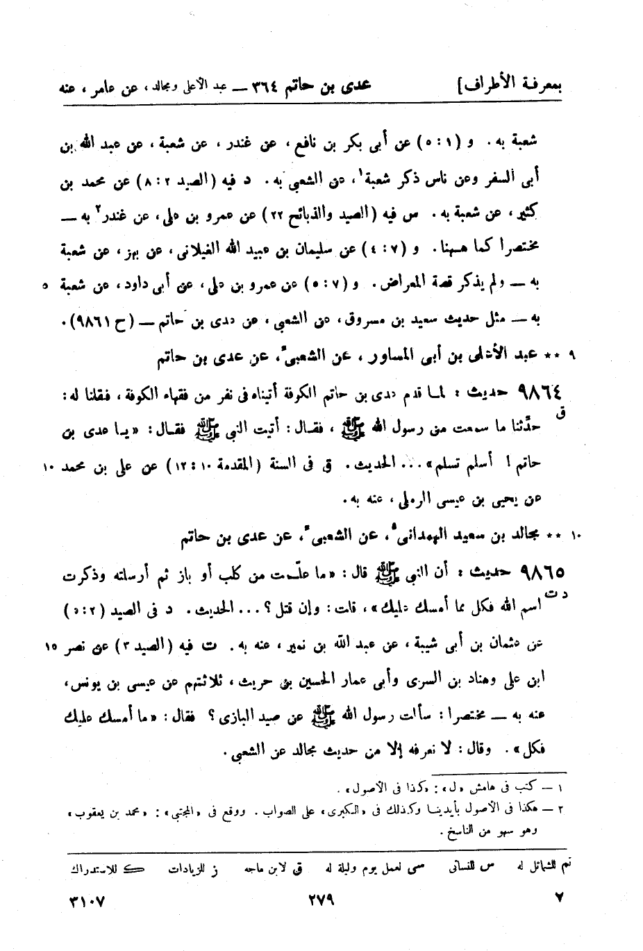 9864 -[ق] حديث: لما قدم عدي بن حاتم الكوفة أتيناه في نفر من فقهاء الكوفة , فقلنا له: حدِّثنا ما سمعت من رسول الله صَلَّى اللَّهُ عَلَيْهِ وَسَلَّمَ فقال: أتيت النبيّ صَلَّى اللَّهُ عَلَيْهِ وَسَلَّمَ فقال: يا عدي بن حاتم! أسلم تسلم ... الحديث.