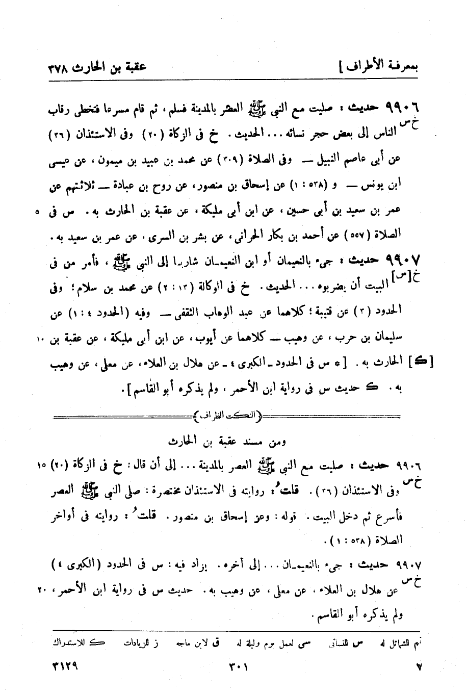 خ في الزكاة (20) وفي الاستئذان (36) عن أبي عاصم النبيل - وفي الصلاة (309) عن محمد بن عبيد بن ميمون، عن عيسى بن يونس - و (538: 1) عن إسحاق بن منصور، عن روح بن عبادة - ثلاثتهم عن عمر بن سعيد بن أبي حسين، عن ابن أبي مليكة، عن عقبة بن الحارث به.