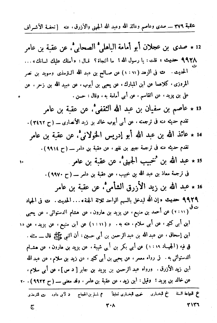 عبد الله بن خُبيب الجهنيُّ، عن عقبة بن عامر في ترجمة معاذ بن عبد الله بن خبيب، عن عقبة بن عامر - (ح 9970) .