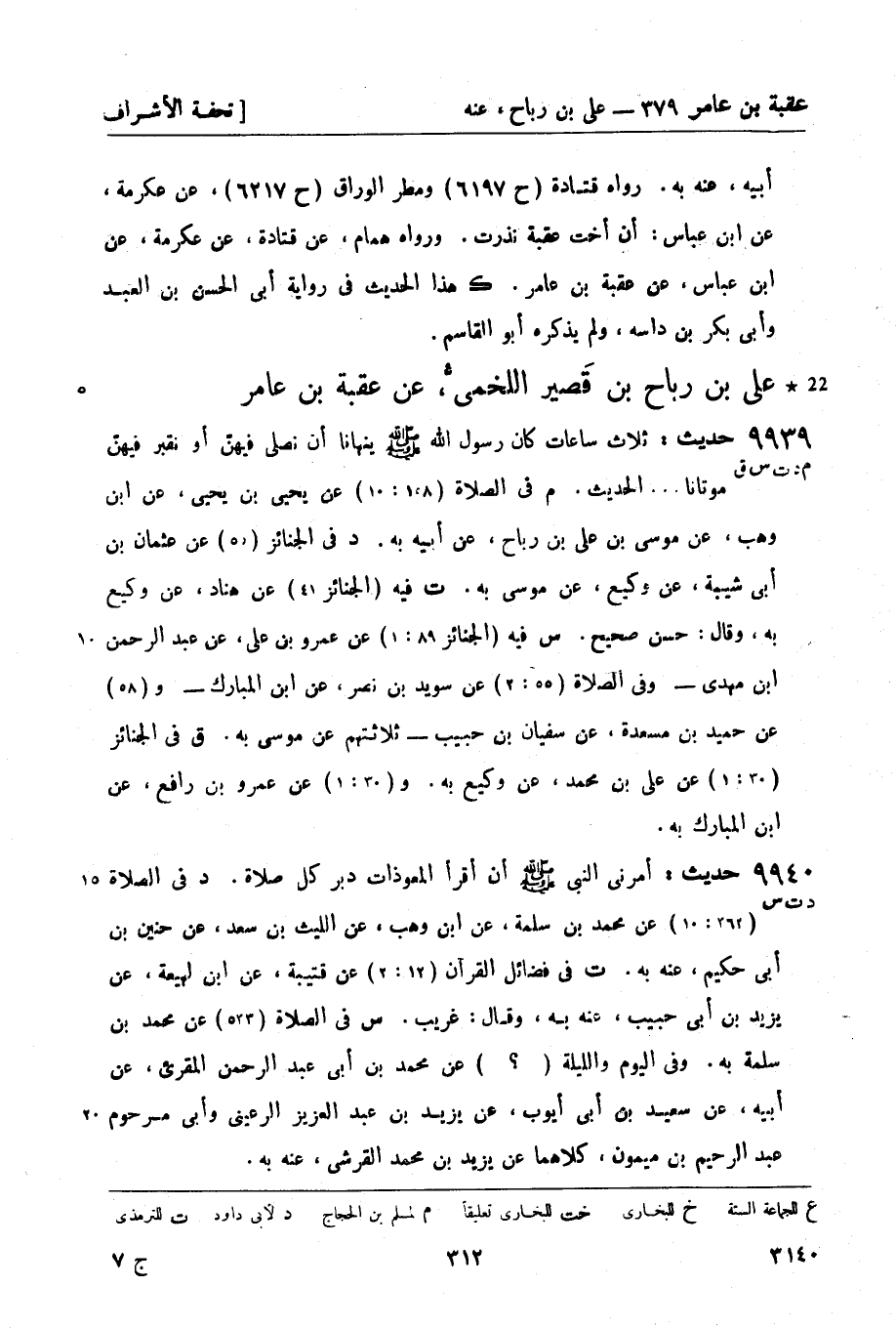 9939 -[م د ت س ق] حديث: ثلاث ساعات كان رسول الله صَلَّى اللَّهُ عَلَيْهِ وَسَلَّمَ ينهانا أن نصلي فيهنّ أو نقبر فيهنّ موتانا ... الحديث.