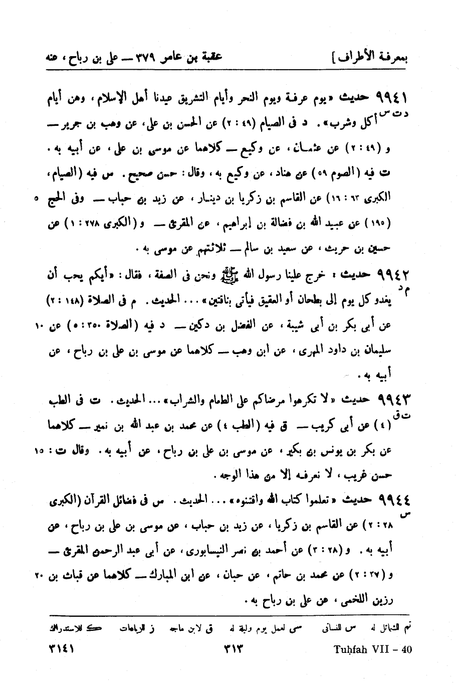 س فيه (الصيام , الكبرى 63: 16) عن القاسم بن زكريا بن دينار، عن زيد بن حباب - وفي الحج (195) عن عبيد الله بن فضالة بن إبراهيم، عن المقرئ - و (الكبرى 278: 1) عن حسين بن حريث، عن سعيد بن سالم - ثلاثتهم عن موسى به.