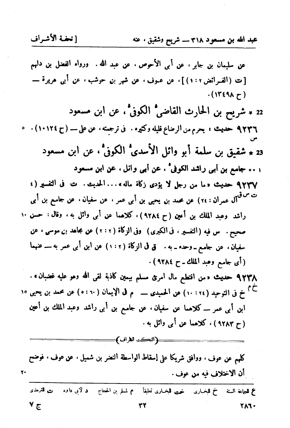 9238 -[خ م] حديث من اقتطع مال امرئ مسلم بيمين كاذبة لقي الله وهو عليه غضبان. (خ) في التوحيد (24: 10) عن الحميدي -
