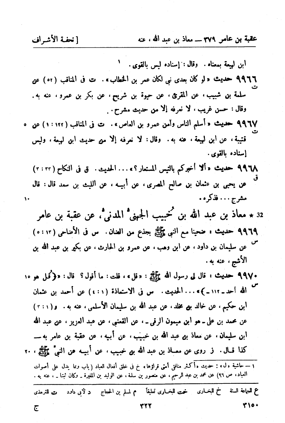 9966 -[ت] حديث لو كان بعدي نبي لكان عمر بن الخطاب. (ت) في المناقب (52) عن سلمة بن شبيب، عن المقرئ، عن حيوة بن شريح، عن بكر بن عمرو , عنه به. وقال: حسن غريب , لا نعرفه إلا من حديث مشرح.