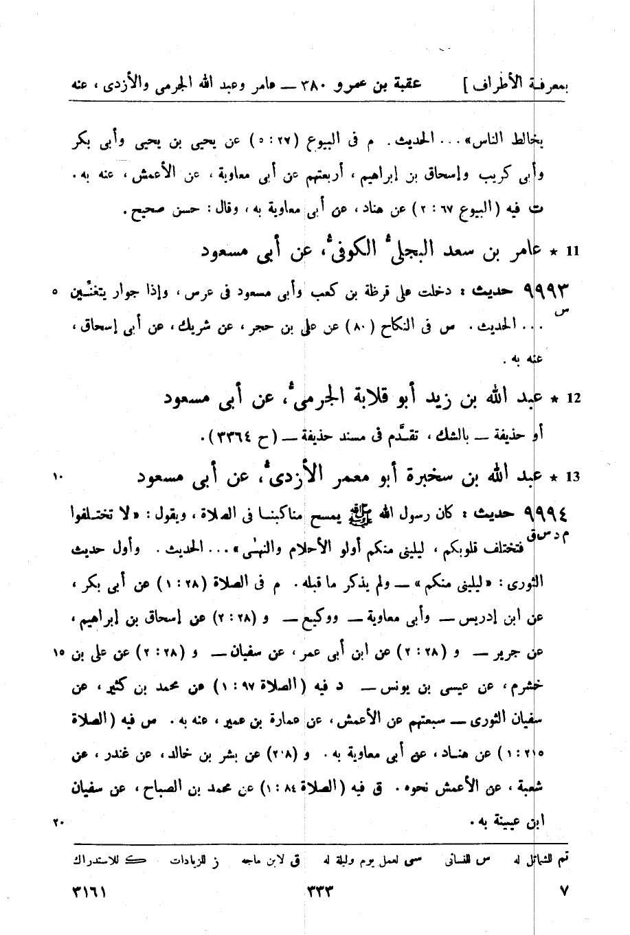 م في الصلاة (28: 1) عن أبي بكر، عن ابن إدريس - وأبي معاوية - ووكيع - و (28: 2) عن إسحاق بن إبراهيم، عن جرير - و (28: 2) عن ابن أبي عمر، عن سفيان - و (28: 2) عن علي بن خشرم، عن عيسى بن يونس -